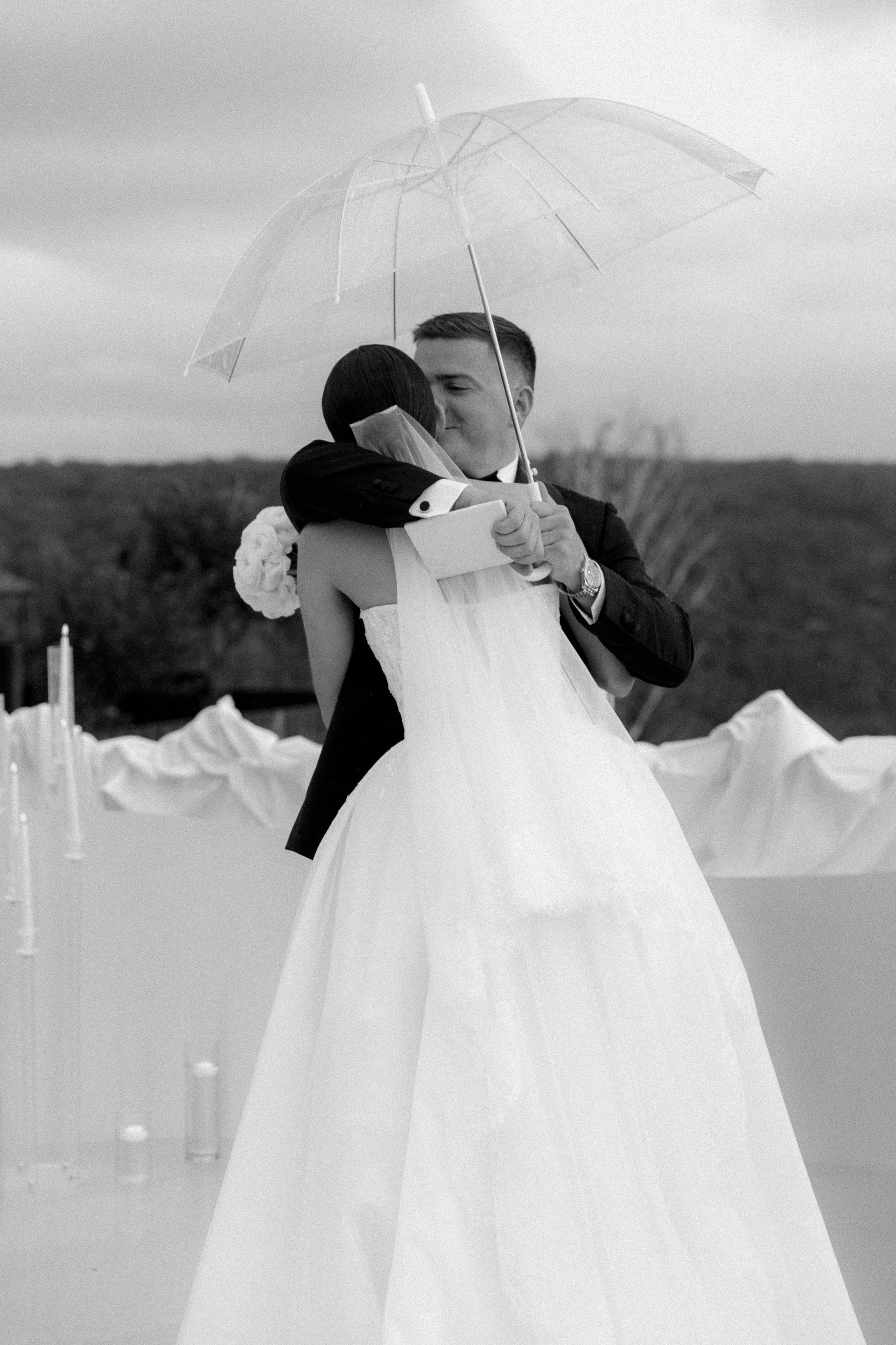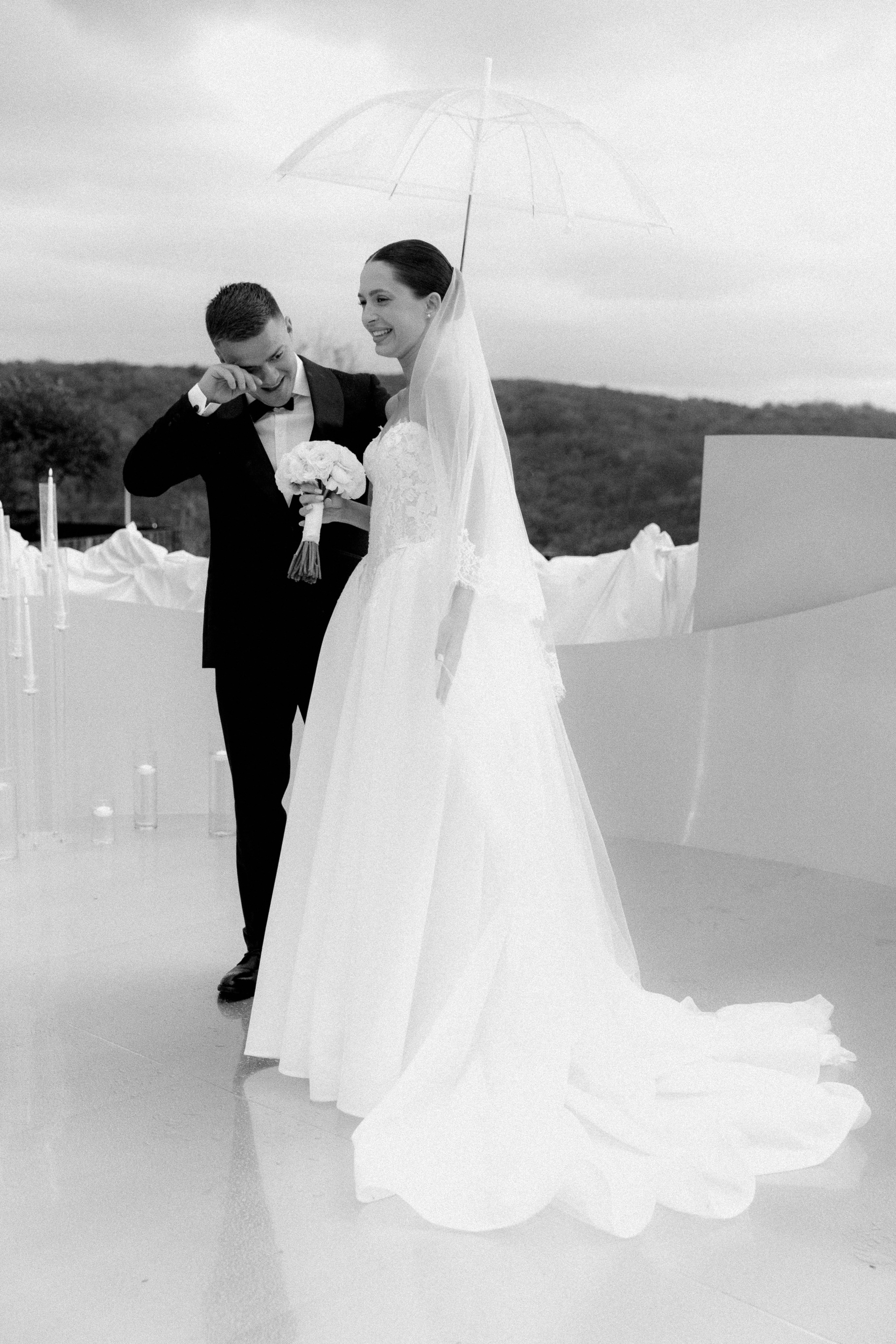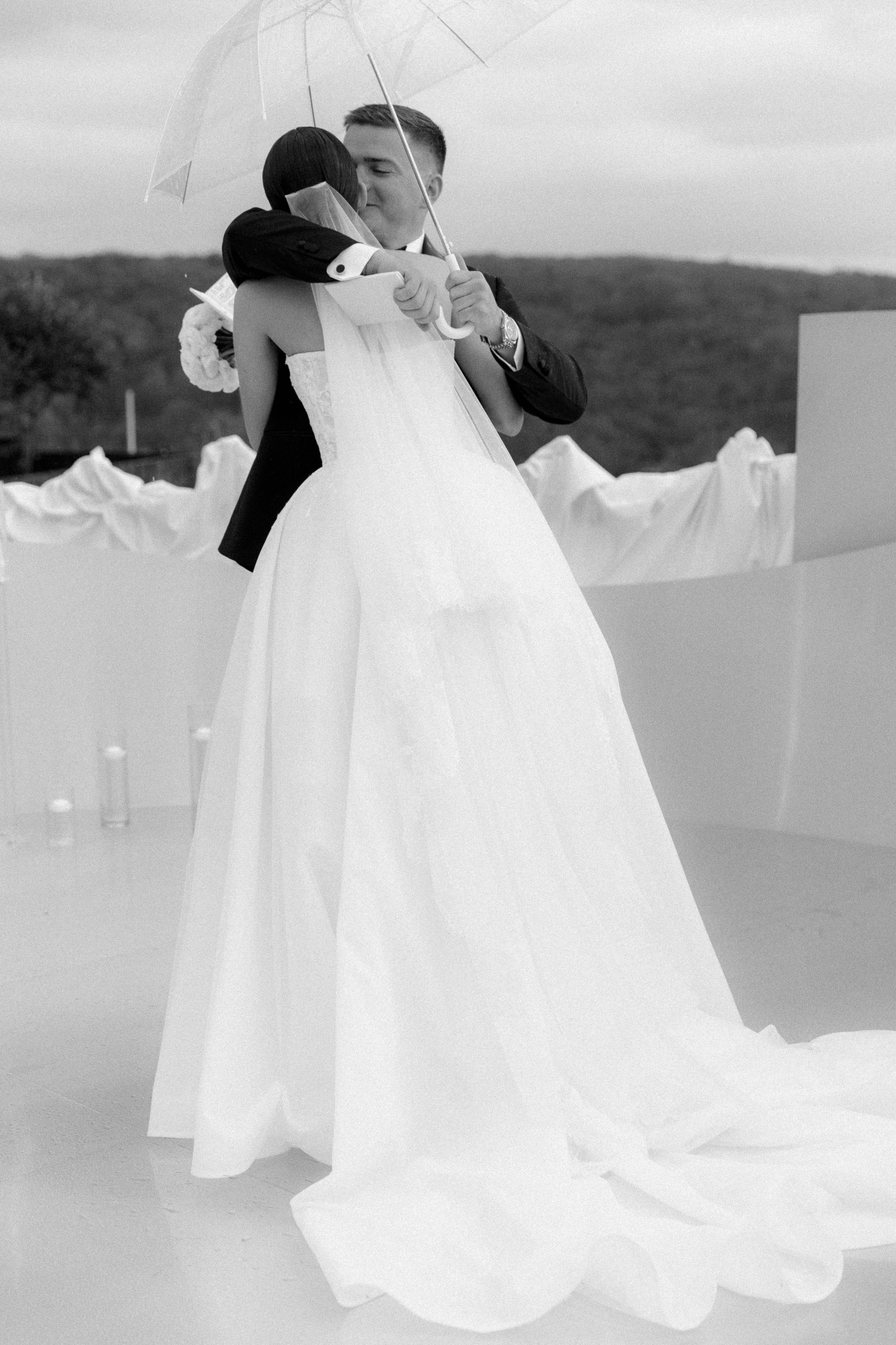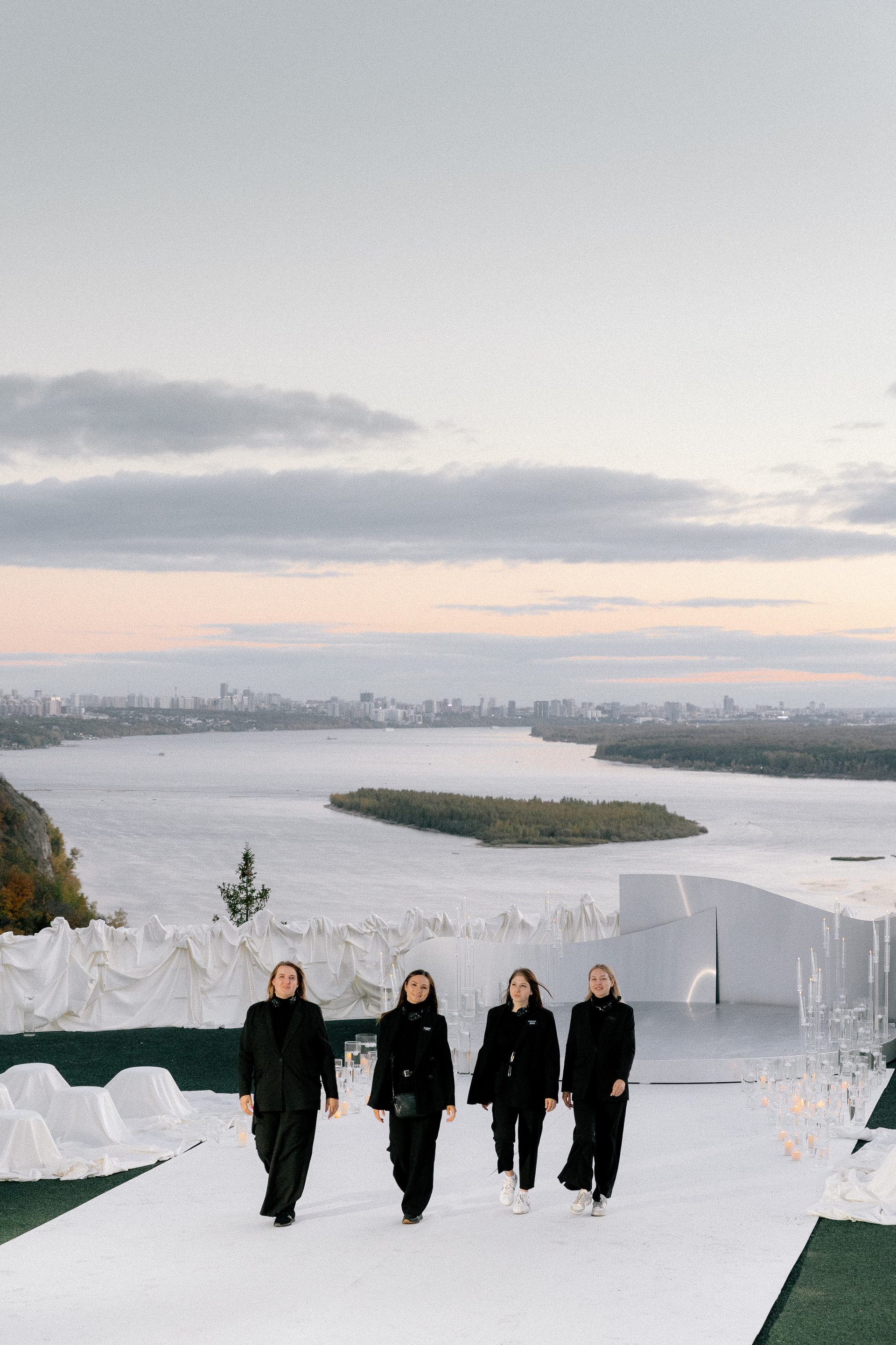 Говорят дождь на свадьбе к счастью, так получилось и в этот раз, ведь для нашего агентства не существует невыполнимых задач. Зонты быстро решили проблему, а на такой красивой площадке только усилил атмосферу праздника.